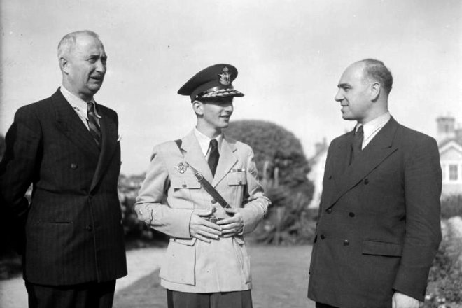 A nagykorúsított II. Péter király (k) Simović tábornok (b) és Knežević udvari miniszter társaságában